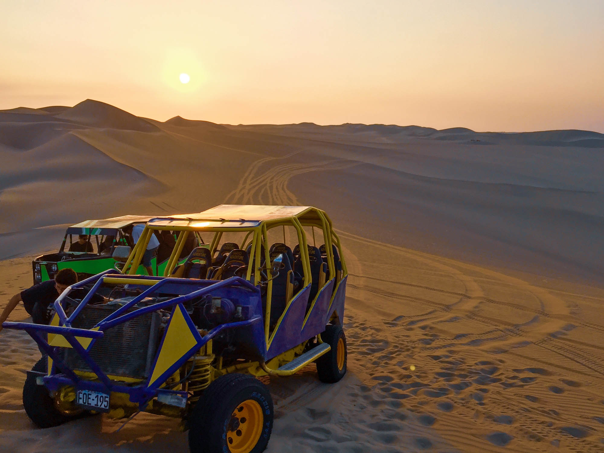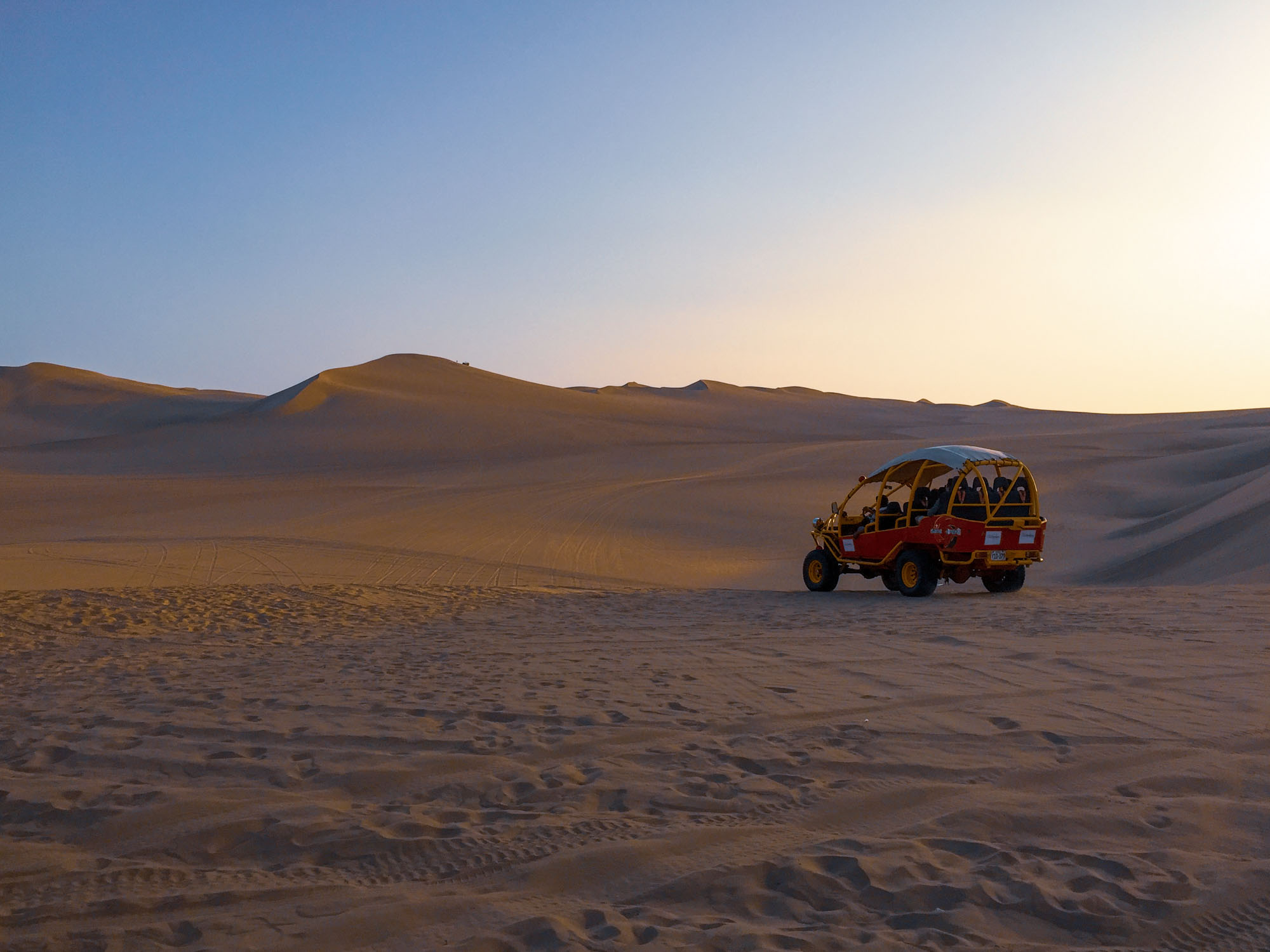 Nous arrivons à 16 h 25 en taxi (nous venons de Paracas). Le chauffeur de taxi nous met en relation avec un ami à lui pour qu’on réserve un tour de buggy dans les dunes.