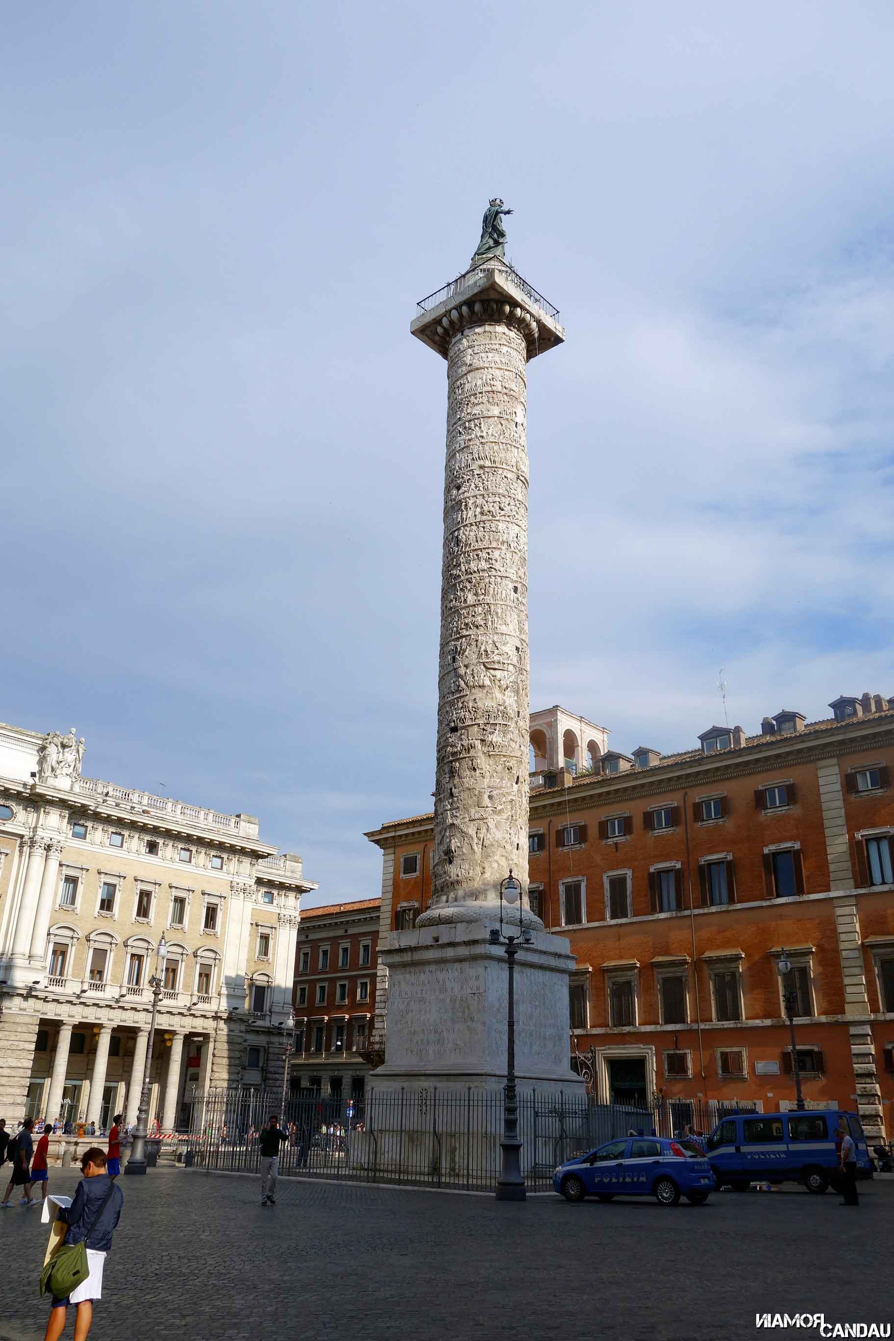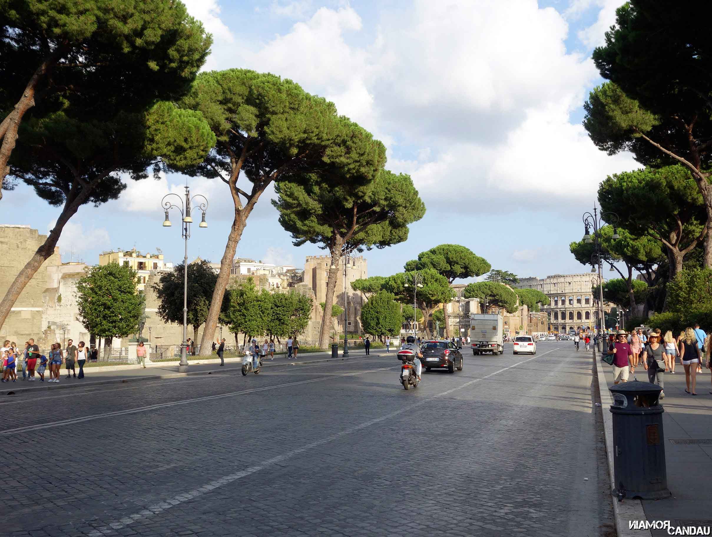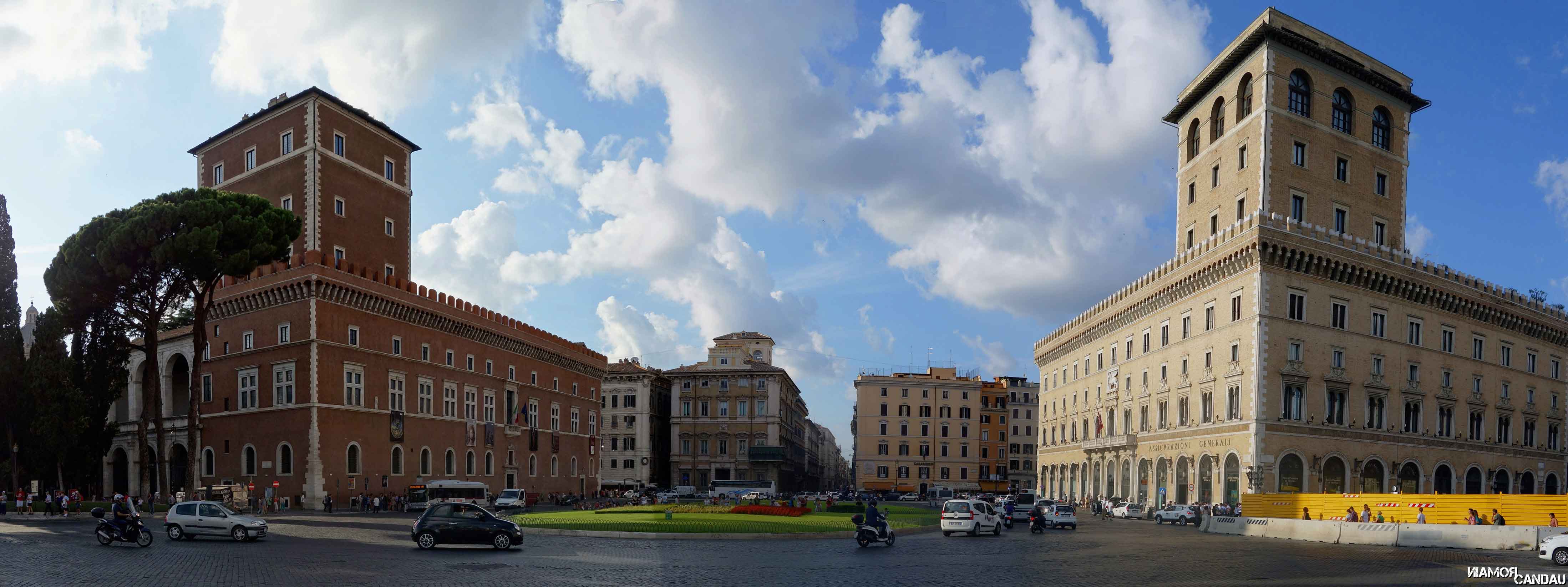 Derrière ce bâtiment, en hauteur, se trouve le Capitole (Campidoglio en VO). Sur la droite du Capitole, une petite rue permet d’accéder à un belvédère qui donne sur le Forum Romain et sur le Colisée au loin.