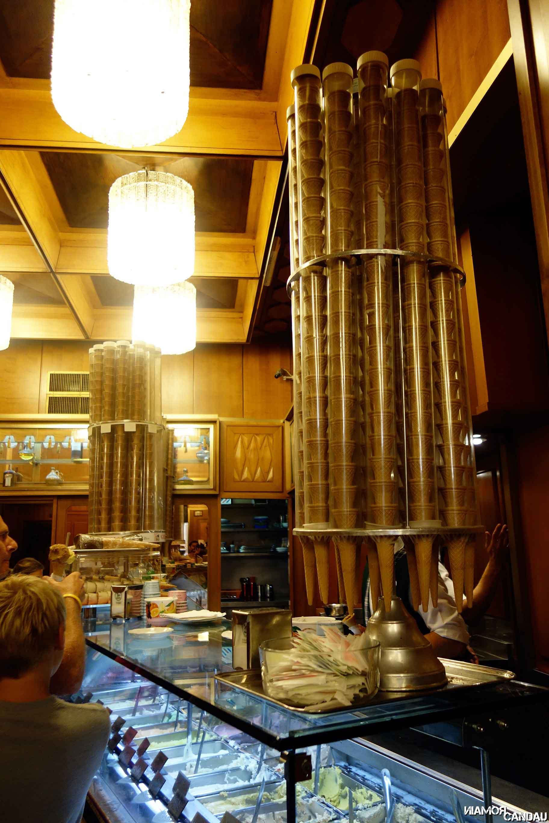 La gelateria Giolitti est une véritable institution romaine depuis 1890. Le glacier le plus connu de Rome propose un grand choix de parfum et de glaces en pot ou bien en cône. La plus grande taille de cône est absolument énorme (photo dans la dernière galerie). Vous devez d’abord faire la queue pour payer avant d’aller chercher les glaces avec le ticket. Les meilleures glaces que nous ayons dégusté jusqu’à présent !