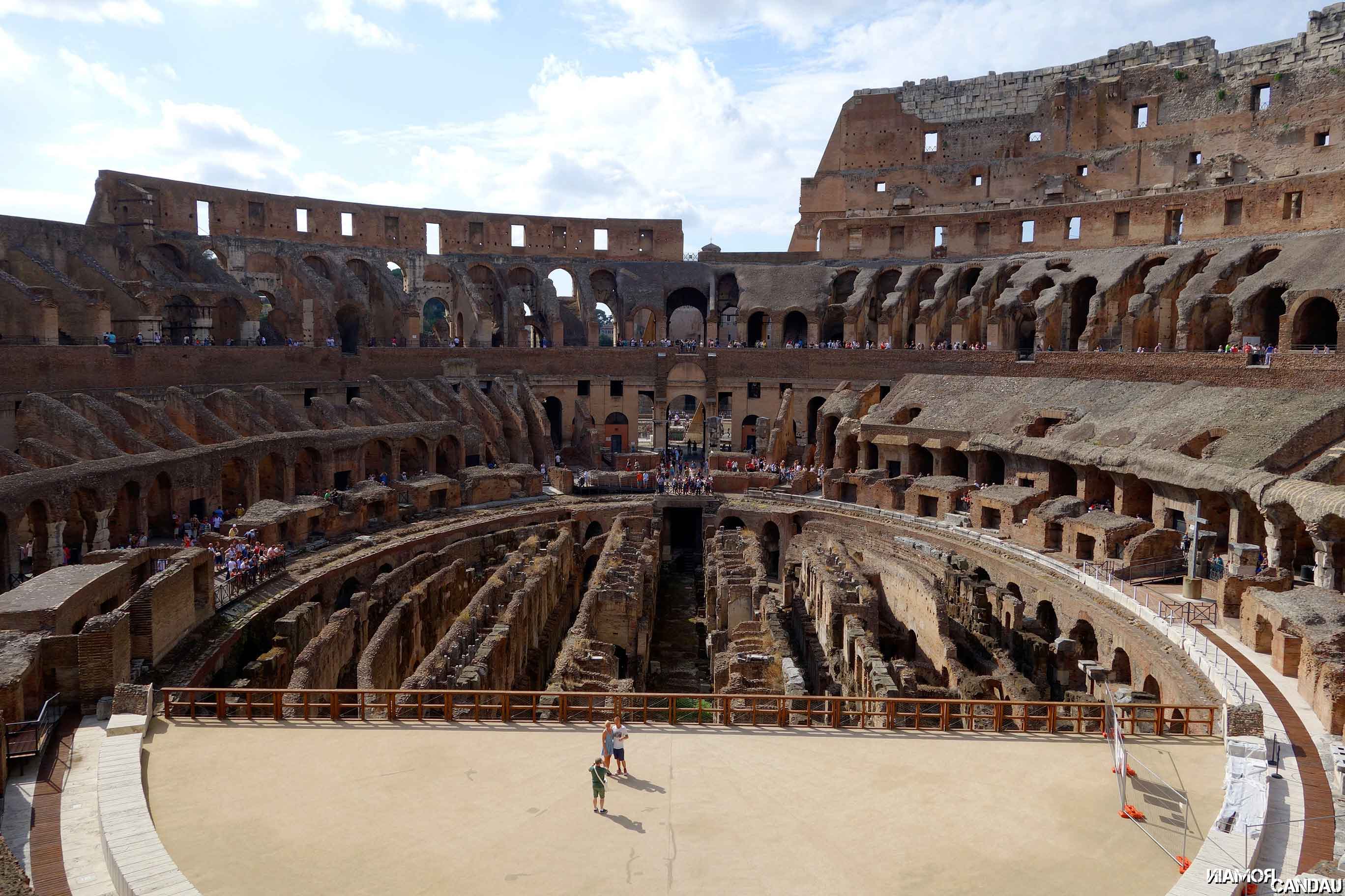 A l’intérieur du Colisée, il y a beaucoup de monde mais sans que cela soit trop gênant car il y a de nombreux points de vue. Le Colisée est assez impressionnant et on sent tout de suite que c’est un pan de l’histoire qui se dresse devant nous. Malgré la détérioration du site (le nouveau maire de Rome a prévu un plan de restauration du Colisée, je crois que c’est en cours), on arrive à s’imprégner de l’ambiance particulière qui devait régner jadis dans ce monument. Le Colisée est particulièrement imposant que ce soit de l’intérieur ou de l’extérieur et son architecture particulière est toujours source d’émerveillement.