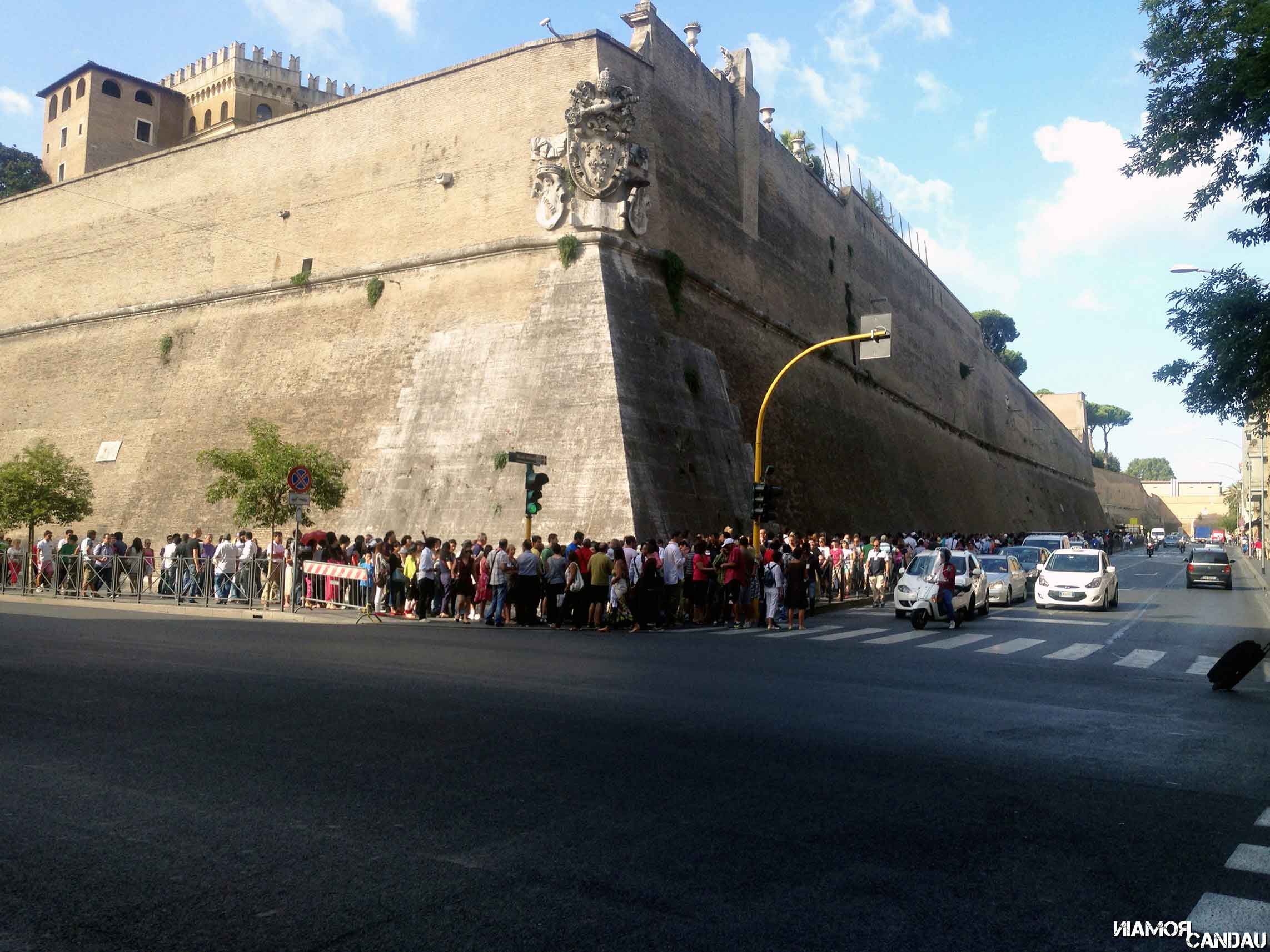 Pour le musée du Vatican, c’est une toute autre histoire. Nous avons fait le choix de réserver nos billets à l’avance sur Internet et bien nous en a pris car à 9h le matin il y avait 300m de queue (voir photo) ! Je vous conseille donc de réserver vos billets sur le site du Vatican (possible seulement les 3 mois précédant votre visite). Le tarif plein est assez élevé, 16 euros + 4 euros de taxe de réservation. Les jeunes (-18 ans) et les étudiants ont le droit à un tarif réduit : 8€. C’est bien mais toujours cher quand on est habitué à la gratuité dans le même cas en France. Le site est seulement traduit en anglais en plus de l’italien. Vous devez choisir un horaire de visite (c’est assez fréquent en Italie). Vous pouvez également réserver le musée du Vatican sur Tiqets.com. Il existe également un billet avec accès aux jardins.