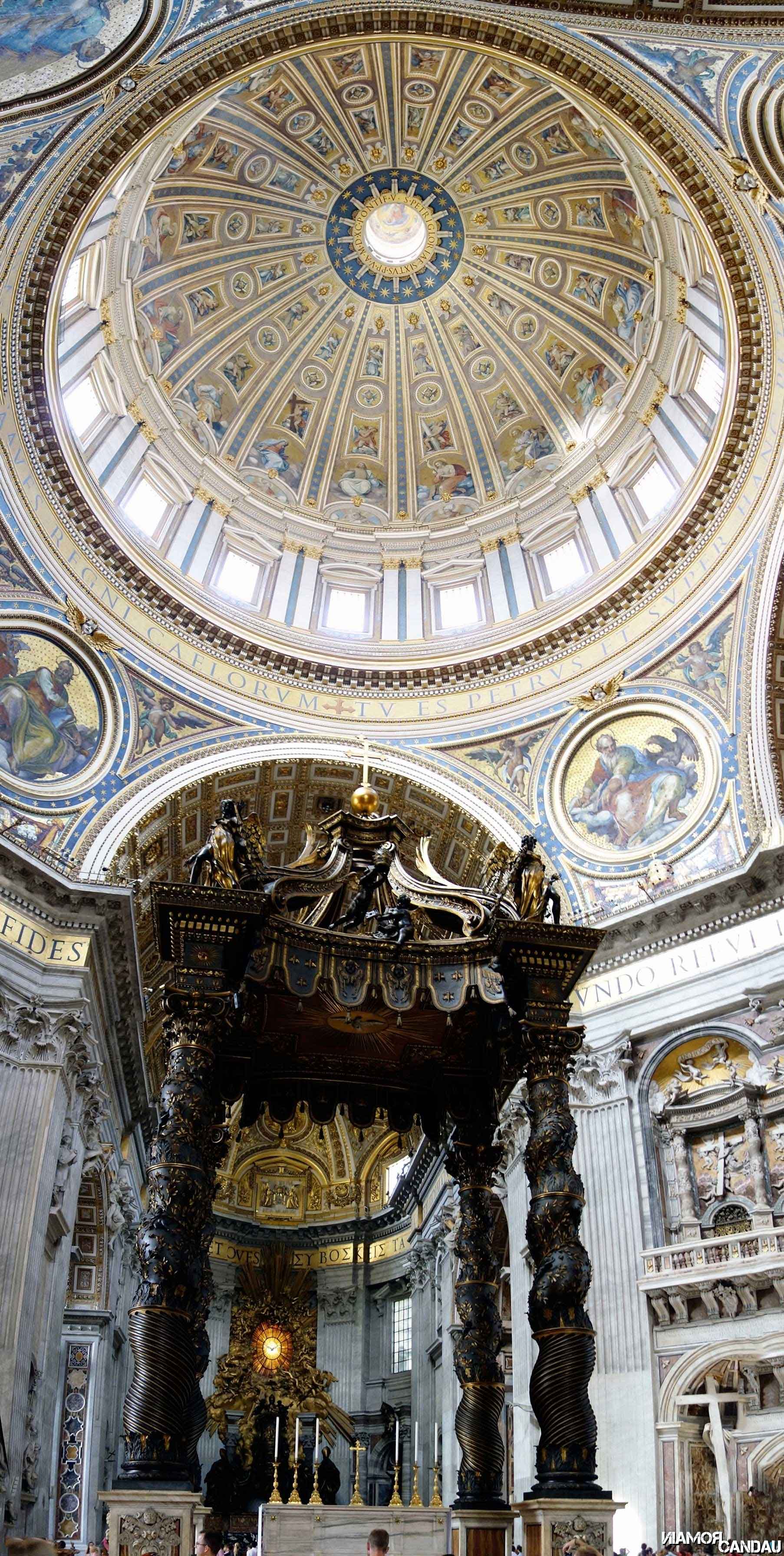 Commençons donc par le Vatican, ce dernier étant à moins de 10 minutes de l’appartement ! Nous avons été littéralement impressionnés par la taille et le gigantisme de la basilique Saint-Pierre (il n’y a qu’à voir la taille des gens sur les photos…). De dehors c’est déjà impressionnant mais ça l’est encore plus dedans. L’intérieur est absolument magnifique et dépasse tout ce que j’ai vu jusqu’à présent dans des édifices semblables.