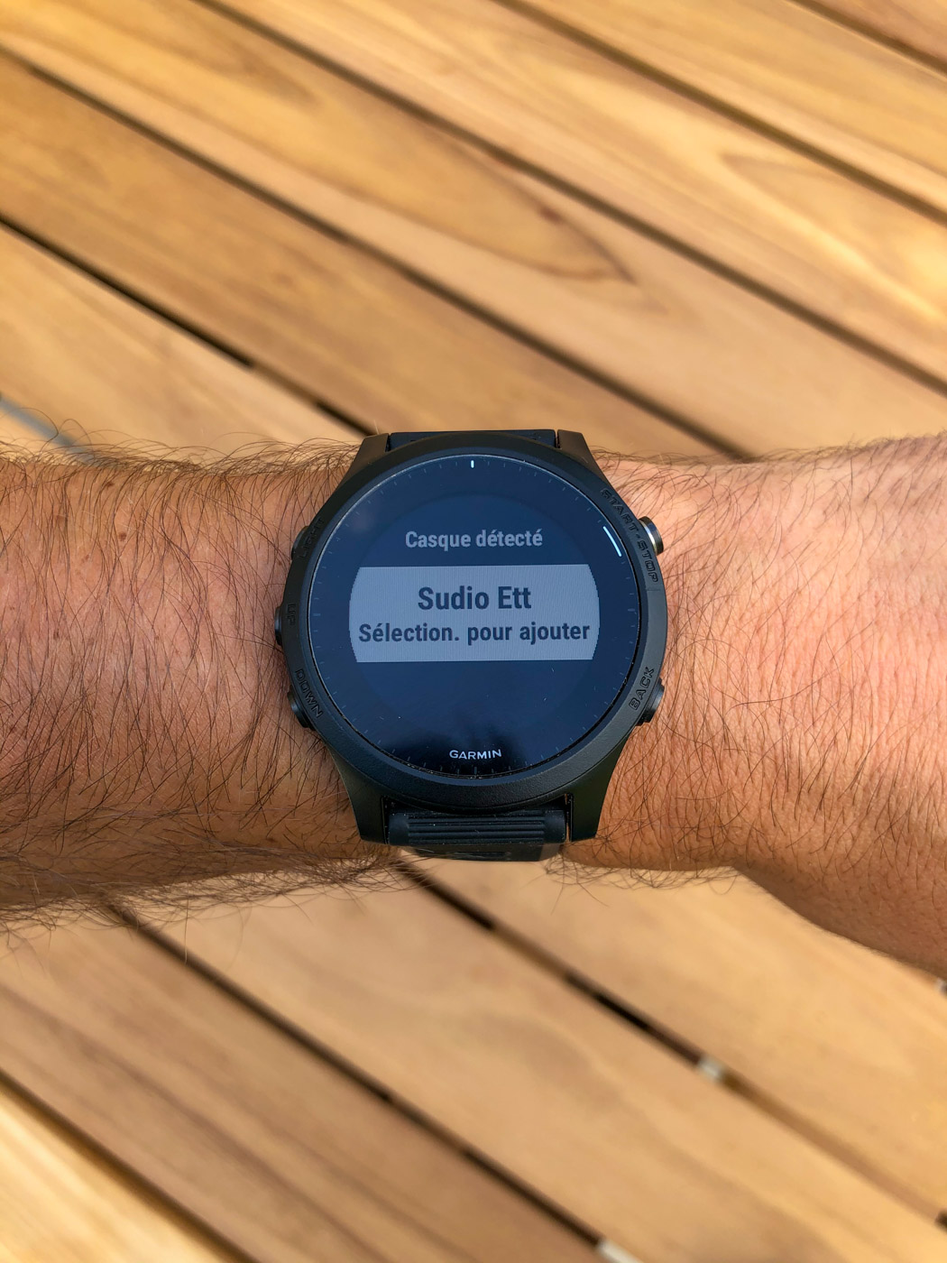 Depuis, je n’ai plus le problème, car les Sudio ETT sont « enregistrés » sur les deux appareils (iPhone et montre Garmin). Ils apparaissent donc dans la liste des appareils déjà enregistrés sur la montre et je peux donc les sélectionner.