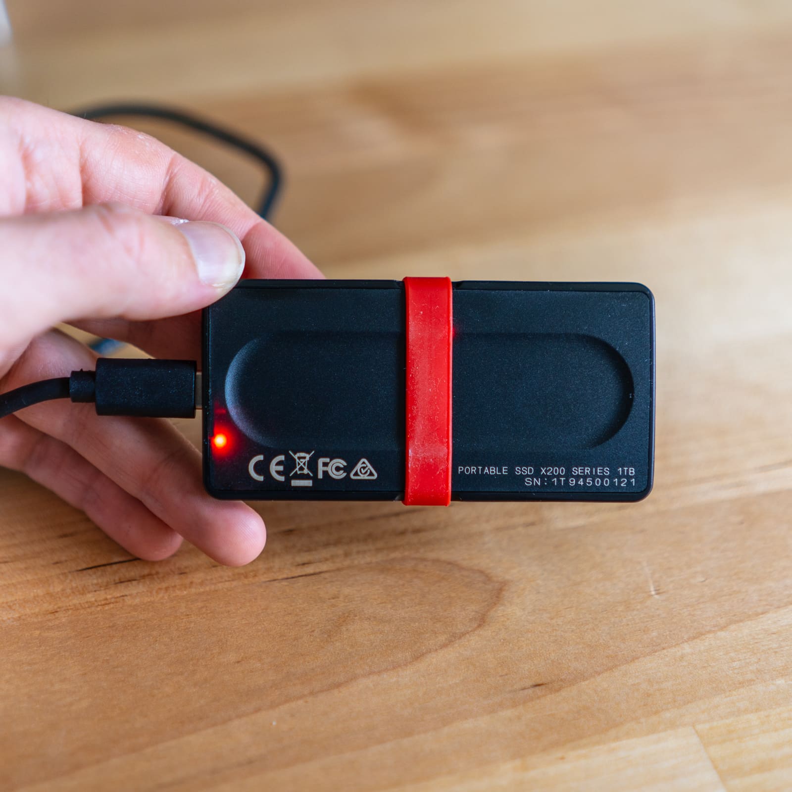 C’est pour moi la taille idéale, car elle est située pile-poil entre la taille d’un disque dur classique et celle d’une clé USB. Le disque dur classique, c’est souvent trop gros, ça ne rentre pas dans une poche par exemple, et la clé USB, il peut m’arriver de la perdre. Le X200 pèse 38g, ce qui est extrêmement léger !
