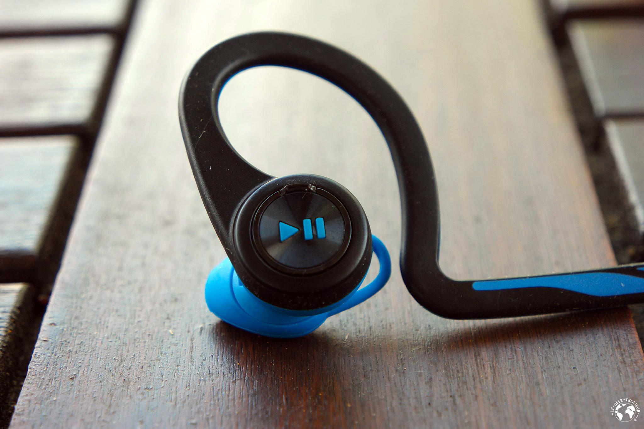De l’avis de tout le monde, que ce soit sur Amazon dans les avis clients ou sur les tests des sites spécialisés, ce sont les Plantronics Backbeat FIT qui présentaient le meilleur rapport qualité prix. J’avais déjà repéré ce modèle à l’époque où j’ai acheté l’Apple Watch mais j’étais assez sceptique de l’arceau derrière la tête.