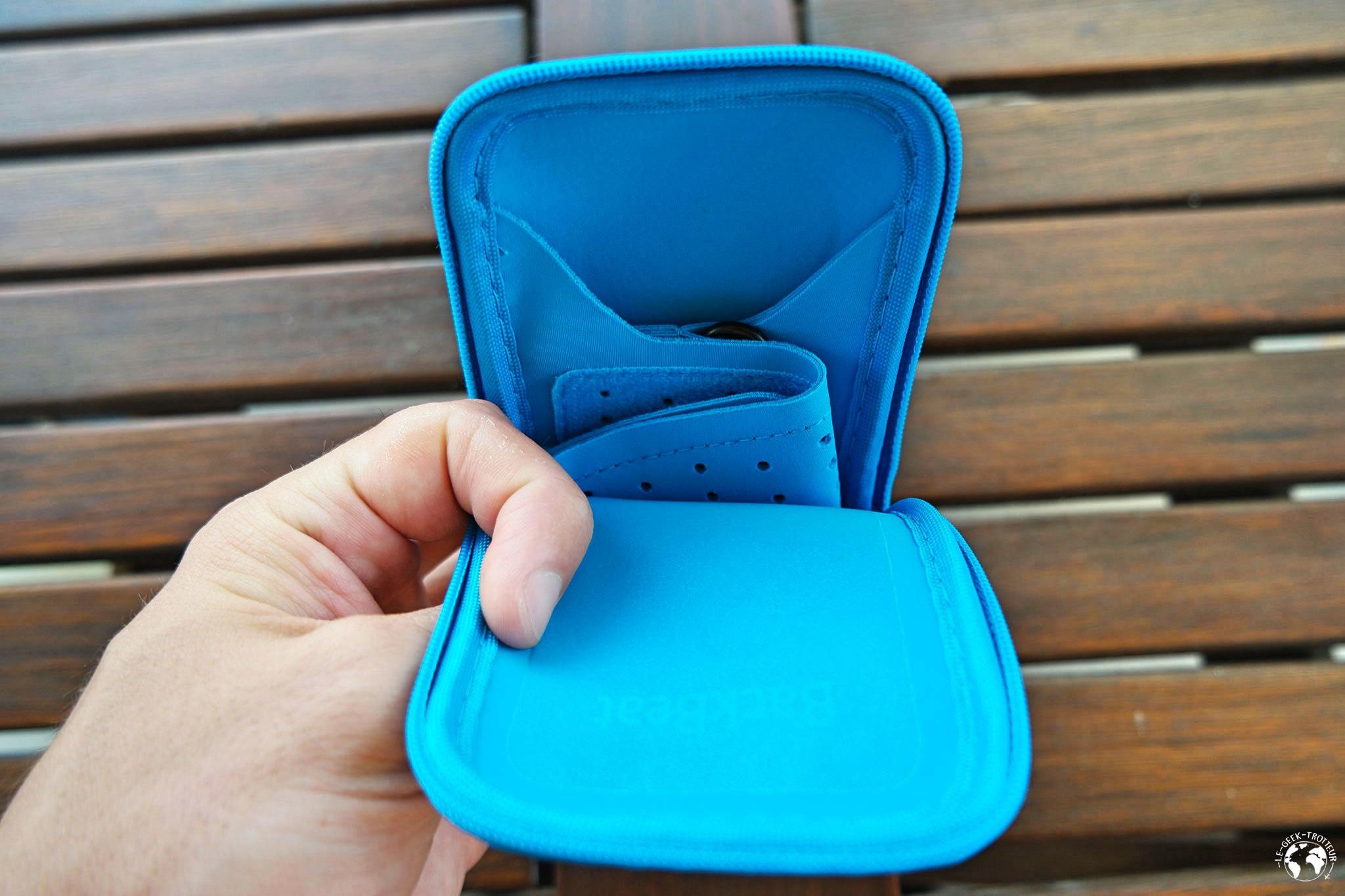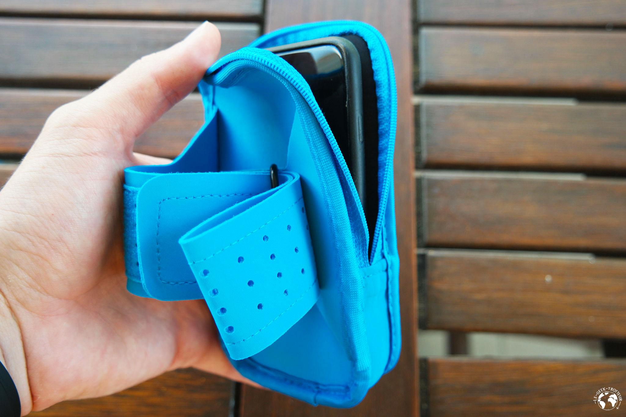 Le packaging, tout d’abord. Les écouteurs sont bien présentés, le système de rabat est pratique puisqu’on peut voir à quoi ressemblent les écouteurs en vrai sans les acheter (ce qui n’est pas le cas de tous les écouteurs). Bon le packaging n’est pas au niveau de que fait Apple mais ce n’est clairement pas le même prix et puis cela n’a pas grande importance. Par contre, énorme plus pour le brassard réversible fourni avec les écouteurs. De base, ça ressemble à un étui pour les ranger mais en le retournant, cela fait aussi brassard pour le téléphone. Bon je ne cours pas avec mon téléphone et même quand c’était le cas, je n’ai jamais imaginé courir avec un gros machin de smartphone sur le bras mais proposer un brassard en cadeau avec les écouteurs, ça s’applaudit ! Du coup, je l’utilise pour ranger les écouteurs, ce qui est sa deuxième fonction (ou première, ça dépend comment on voit les choses).