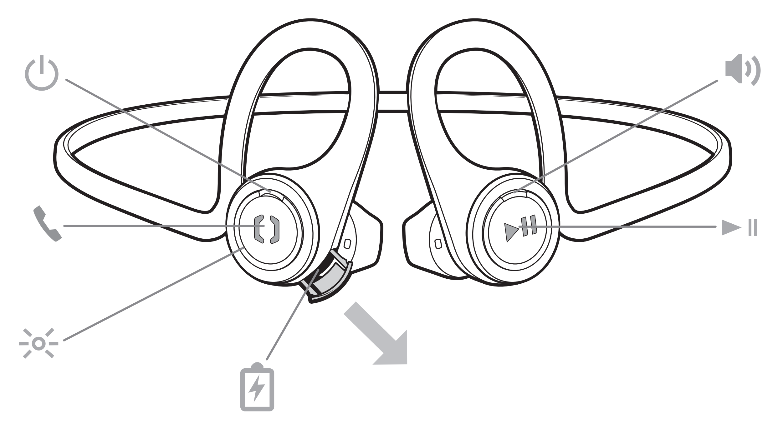 La première fois, j’ai un peu tâtonner pour bien les caler dans les oreilles. Il y a un embout à chaque oreillette qui peut pivoter de plus ou moins 20° afin de bénéficier d’une meilleure tenue dans l’oreille. Au début, il est difficile de se souvenir des commandes situées sur chaque oreillette. On ne se souvient plus si c’est à droite ou à gauche. Au bout de 2 ou 3 sorties, c’est un jeu d’enfant ! En fait, sur chaque oreillette, on a une sorte de petite tige plus dure que le reste qui permet une fonction différente. C’est extrêmement bien pensé car ça évite un maximum les doubles clics ou les appuis longs pas toujours faciles à faire en pleine course. Il y a quand même un double clic à faire pour passer à la piste précédente ou suivante et un appui long pour baisser le volume.